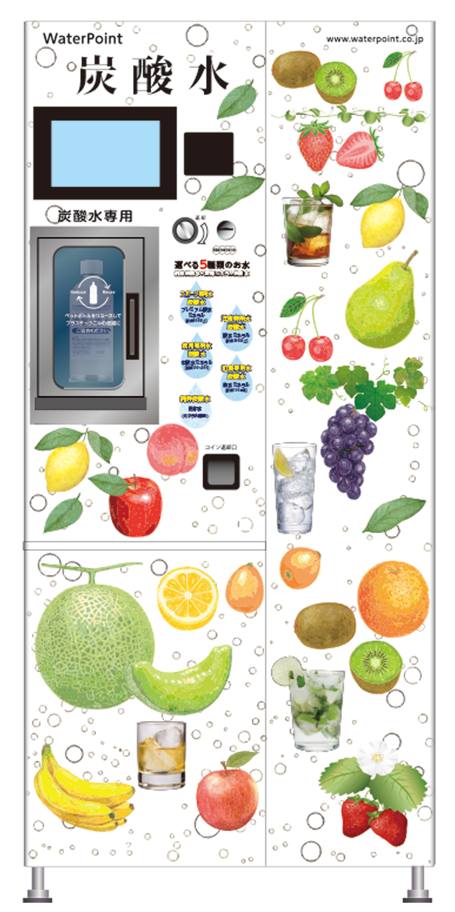 タッチパネル型の水の自動販売機。